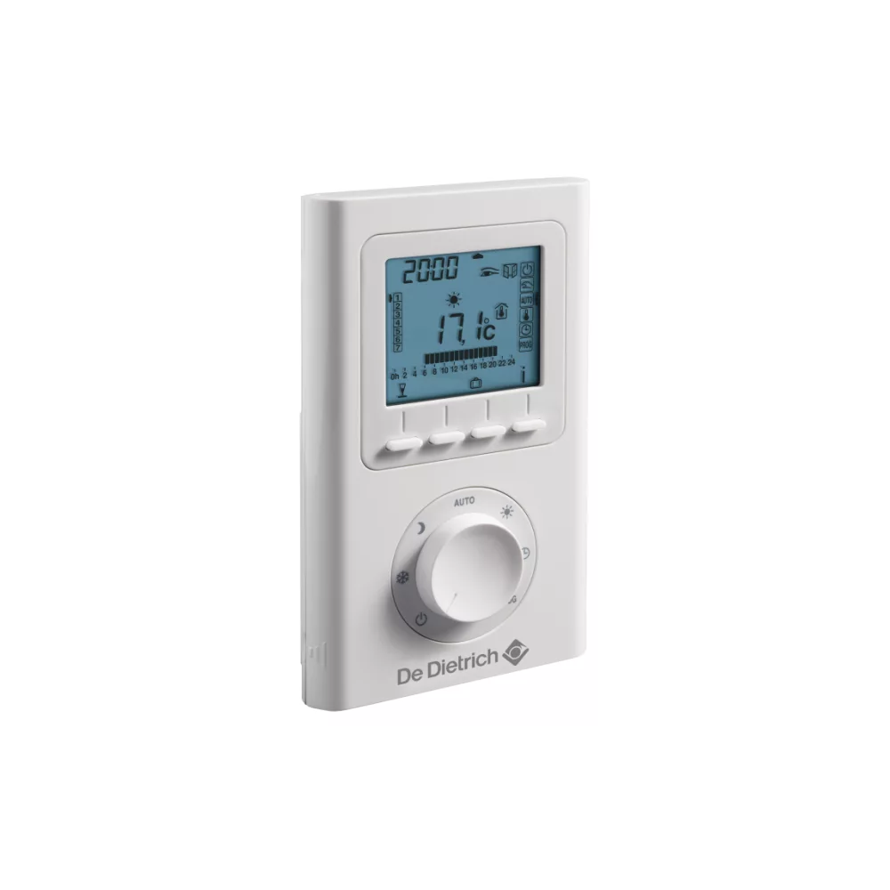 Assure la régulation et la programmation hebdomadaire du chauffage par action sur brûleur selon différents modes de fonctionnement : « automatique » selon programmation, « permanent » à une température réglée ou « vacances ».